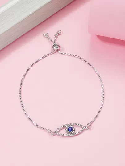 Pulsera con diamante de imitación con diseño de ojo - Azul - Añade 2