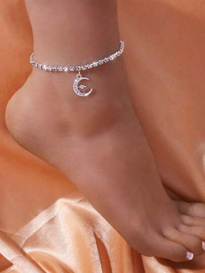 Pulsera tobillera con diamante de imitación con diseño de luna - Plateado - Añade 1
