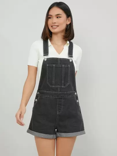 Petos mezclilla bajo de doblez sin top - Gris Oscuro - Añade 1