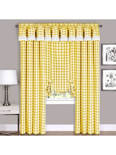 Achim Home Furnishings Buffalo - Cortina de Cuadros para Ventana, Par de bandejas, Blanco/Negro, Tier Pair 58 x 24, 1 - Amarillo y blanco - Añade 1
