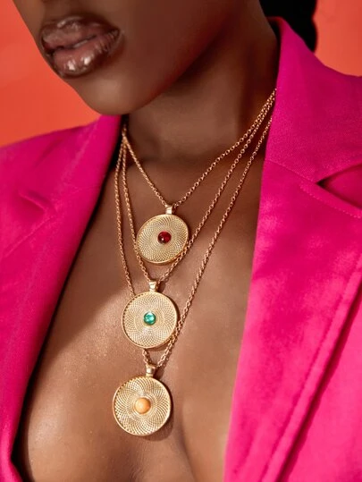 Collar a capas con diseño de redondo - Amarillo Oro - Añade 3