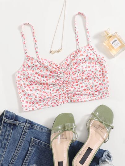 SHEIN WYWH Top Corto Estilo Cami Con Estampado Floral Fruncido En La Parte Delantera - Multicolor - Añade 5