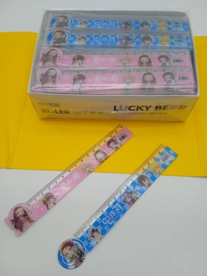 REGLA KAWAII DE 15cm CAJA CON 100pz DOS COLORES Y DISEÑOS DIFERENTES - Multicolor - Añade 6