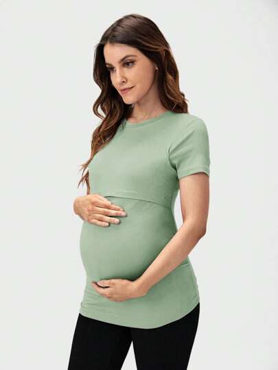 SHEIN Maternidad Camiseta unicolor amamantamiento - verde menta - Añade 2