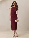 BizChic Vestido elegante de satén con escote de drapeado, largo, adecuado para bodas, negocios casuales, conciertos y atuendo de invitado de boda