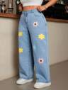 SHEIN EZwear Pantalones holgados de talla grande para mujer con cintura elástica, de pierna ancha y con lentejuelas de unicolor