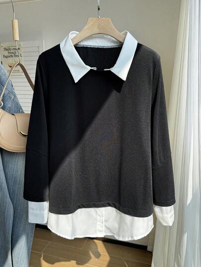 Comfortcana Sudadera Plus de 2 en 1 con cuello de contraste - Negro - Añade 5