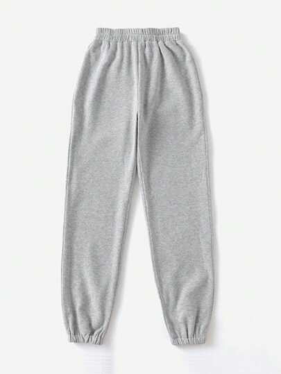 SHEIN EZwear Pantalón de chandal elástico de cintura alta de color sólido de primavera - Gris Claro - Añade 3
