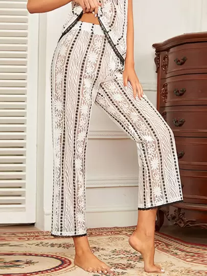 SHEIN Pantalones de dormir con patrón floral con encaje - Multicolor - Añade 1