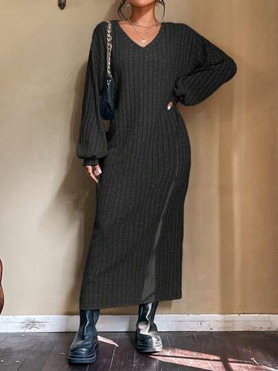 SHEIN LUNE Vestido de hombros caídos de muslo con abertura - Negro - Añade 4