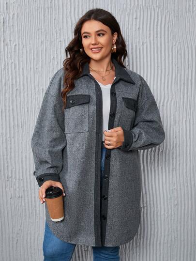 SHEIN LUNE Abrigo oversize con bolsillo con solapa y ribete de contraste para otoño/invierno - Multicolor - Añade 2