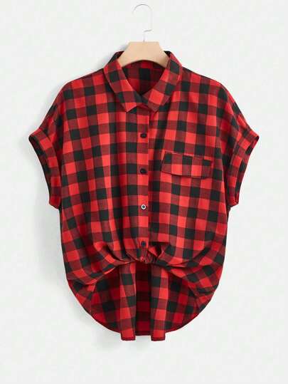 SHEIN LUNE Camisa con estampado de guingán con botón delantero - Multicolor - Añade 1
