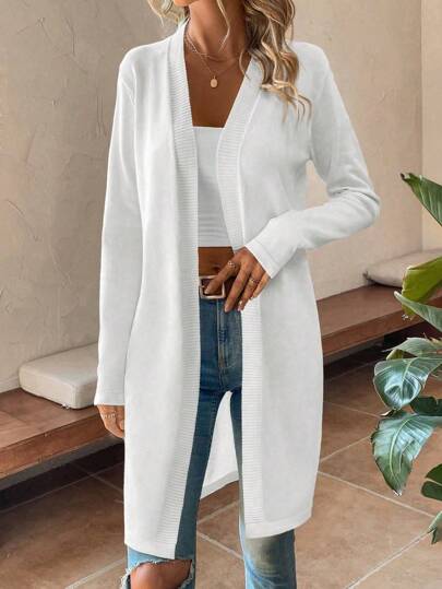 EMERY ROSE Cárdigan de manga larga de unicolor con abertura frontal, blusas de manga larga - Blanco - Añade 7