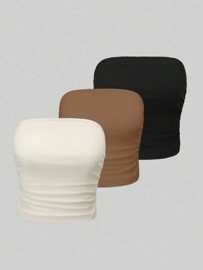 SHEIN LUNE Conjunto De Tops Sin Tirantes De Color Sólido De 3 Piezas Para Mujer - Multicolor - Añade 2