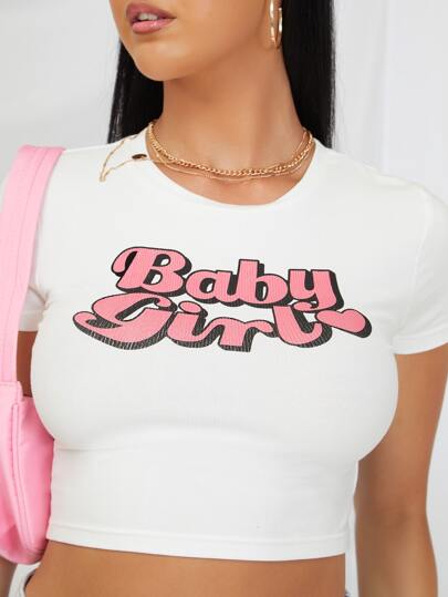 SHEIN Top corto con estampado de letra - Blanco - Añade 5
