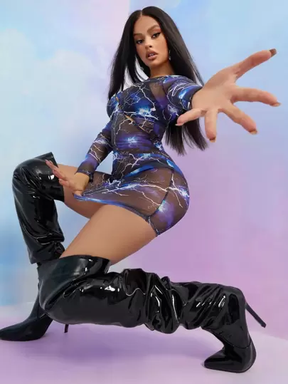 SHEIN Vestido Transparente Gráfico Sexy - Multicolor - Añade 5