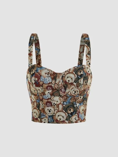 SHEIN MOD Top de tirantes bustier con estampado de oso - Multicolor - Añade 6