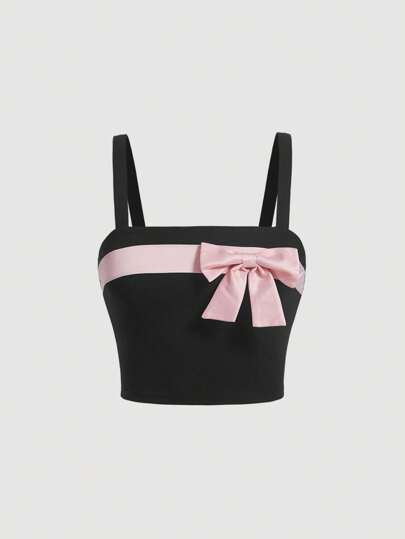 SHEIN MOD Top de tirantes con lazo delantero - Negro - Añade 4