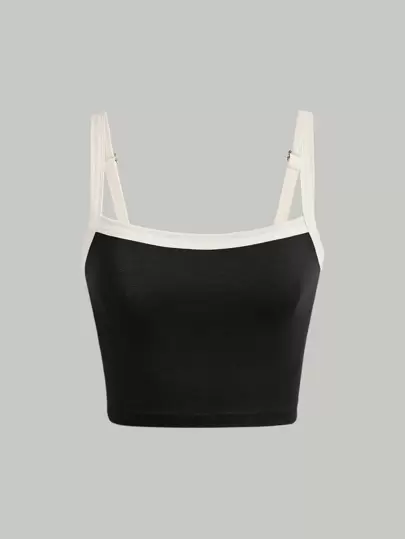 SHEIN MOD Top de tirantes unido en contraste tiras ajustables - Negro - Añade 1