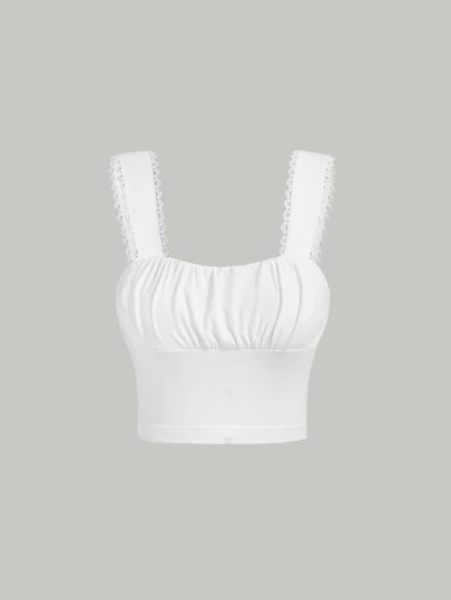 SHEIN MOD Top pecho con fruncido ribete con encaje crop ancho con tira - Blanco - Añade 3
