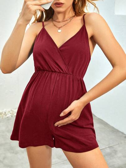 SHEIN Maternidad Mono de tirantes unicolor - Burdeos - Añade 4