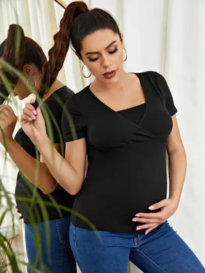 SHEIN Maternidad camiseta de lactancia 2 en 1 unicolor - Negro - Añade 5