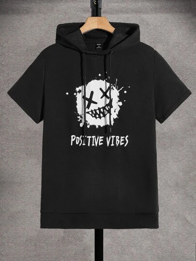 Manfinity Hombres Capucha con estampado de dibujos animados y letra con cordón - Negro - Añade 1