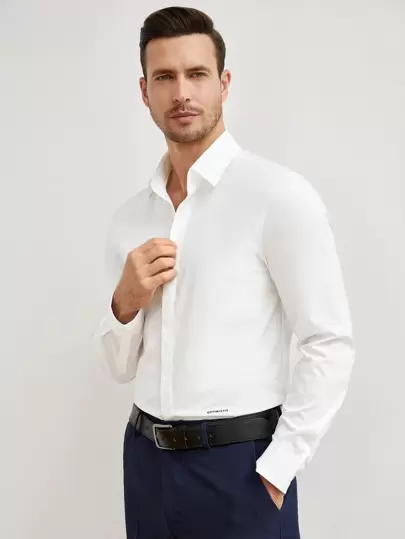 Manfinity Hombres Camisa unicolor con botón delantero - Blanco - Añade 5