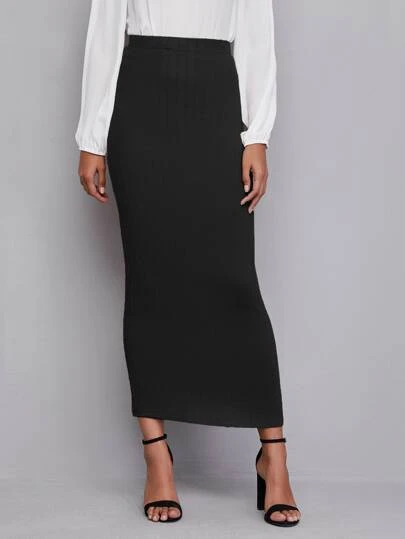 Mulvari Falda unicolor con textura - Negro - Añade 3
