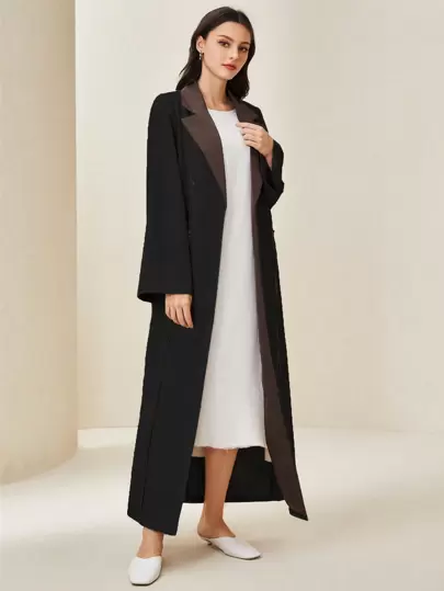 Al Najma Abaya de doble botonadura con bloques de color - Negro - Añade 5