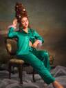 PinupPomp Lencería sexy para mujer, sujetador de encaje negro y tela verde con parches + aros, combinado con lazo negro, estilo retro palaciego para fiestas y celebraciones