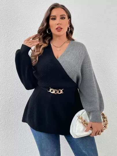 SHEIN Privé Jersey de dos tonos con cadena delantero de manga murciélago - Multicolor - Añade 2