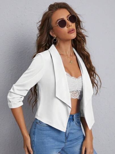 SHEIN Privé Blazer de cuello chal con abertura frontal para otoño/invierno - Blanco - Añade 3
