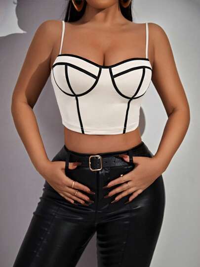 SHEIN SXY Top de tirantes crop unido en contraste - Beis - Añade 2