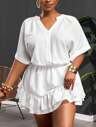 Slaydiva Vestido de verano/primavera 2025 de talla grande para mujer, estilo vintage, western, tropical, festival de música, club, viaje por carretera, casual, escapada urbana, graduación, vacaciones elegantes, princesa. Vestido mini corte evasé con cuello corazón, parches y volantes en el bajo, color fucsia.