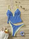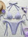 Swim Mod Conjunto de bikini de halter con textura y cuentas para mujer, primavera/verano