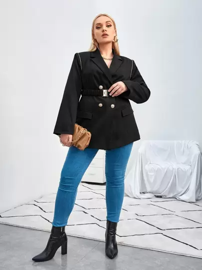 SHEIN Unity Blazer ribete en contraste con botones con cinturón - Negro - Añade 2