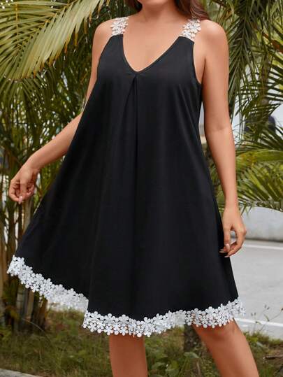 SHEIN Clasi Vestido de tirantes panel con encaje - Negro - Añade 1