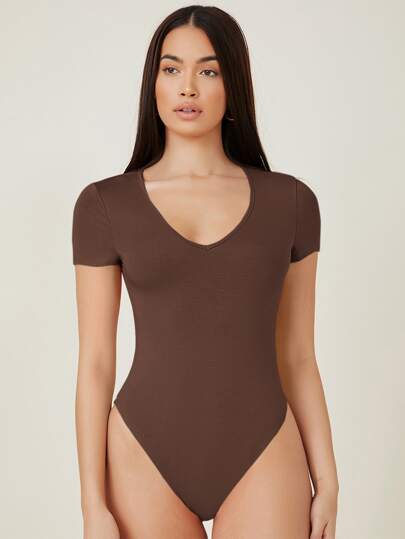 SHEIN Body unicolor ajustado - Café integral - Añade 2