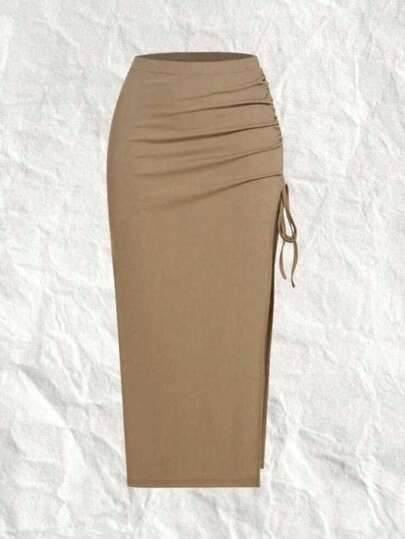 FALDA CON FRUNCIDO - Caqui - Añade 1