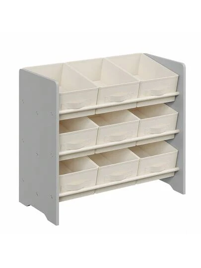 SONGMICS Estantería Infantil para Juguetes, Organizador Infantil para Libros, 29.5 x 62.5 x 60 cm, Gran Capacidad, 9 Cajas de Almacenamiento no Tejidas, Gris Paloma - Gris - Añade 3