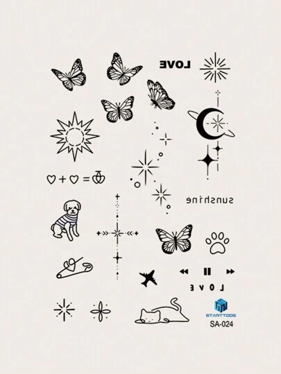 STARTTOOS 1 Pieza Pegatina De Tatuaje Temporal Abstracto En Negro De Mariposa Creciente Personalizada Para Dedo, Muñeca Y Otras Partes Pequeñas Del Cuerpo,tatuajes maquina para tatuar tatuajes falsos - Negro - Añade 6