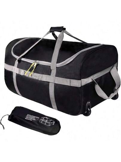 2025-Nueva bolsa de viaje campMax con ruedas, bolsa de viaje plegable grande con ruedas, color negro, 120 l - Negro-120l - Añade 1