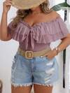 SHEIN VCAY Camiseta de hombros descubiertos con volantes en talla grande de unicolor