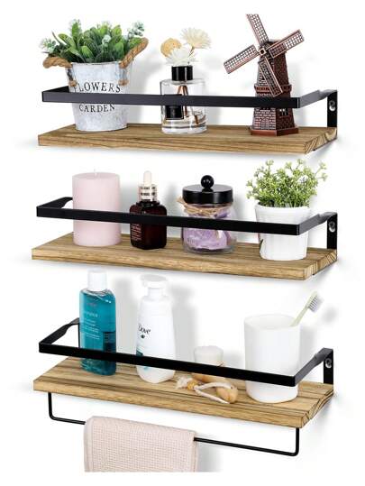 Juego de 3 estantes flotantes montados en la pared - Beis - Añade 4