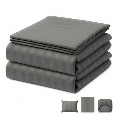 Juego de Sábanas de Microfibra Premium Tipo Satén Suaves y Frescas con Bolsillo Profundo para Cama Individual Matrimonial Queen King Incluye Sábana de Cajón Sábana Plana y Fundas de Almohada - Gris - Añade 3