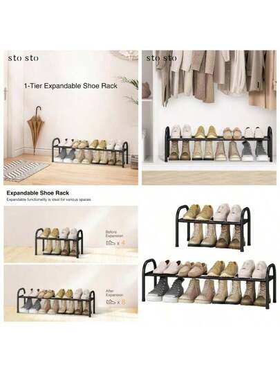 Organizador de zapatos expandible, estante de metal de 1 nivel para clset, hasta 8 pares de almacenamiento ajustable para entrada de puerta delantera, organizador de pie ltima intervensin - inicial - Añade 1