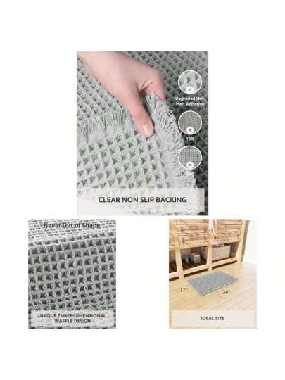 Tapete de bao tipo gofre, superabsorbente, antideslizante, para bao, lavable a mquina, con borlas, alfombras de bao para piso de bao, junto a la tina, 2x 6 pies, verde - Gris claro + 17" x 24" - Añade 8