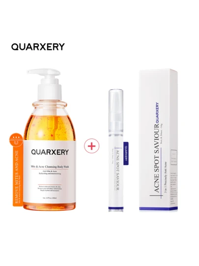Set de Cuidado Facial Anti-Acné QUARXERY | Gel de Ducha Anti-Ácaros + Lapicero Preciso 3 en 1 para Piel Sin Imperfecciones - Naranja - Añade 1