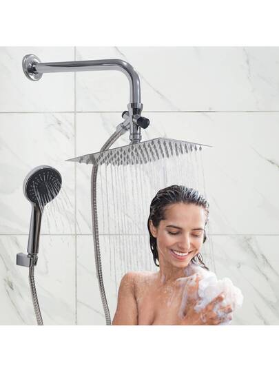 Kit de ducha acero inoxidable con regadera cuadrada 20cm brazo cruceta manguera y regadera tipo teléfono ideal para baja presión y baños modernos con instalación fácil - Gris Claro - Añade 1
